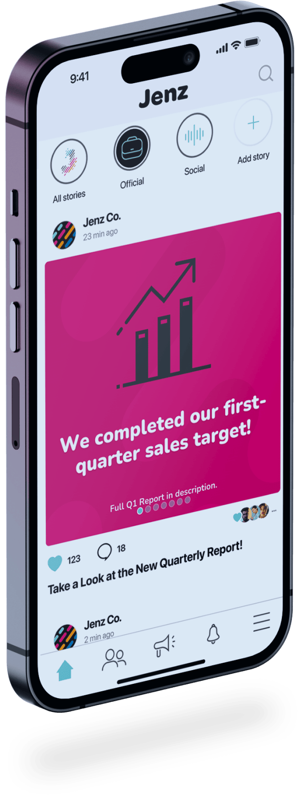 Jenz is an internal social network that works like your mobile intranet and a company’s employee engagement app.