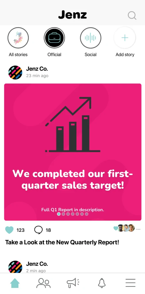 In the first place is Jenz, a “closed social network” where you post literally anything that your employees will find meaningful and then immediately get feedback if needed. It gives employees everything they need in a simple, sleek, easy-to-use interface increasing engagement, productivity, and collaboration across the enterprise. It is the central location employee’s go-to for fast and relevant access to all the information they need every day to communicate, collaborate and learn. With Jenz, you can expect a higher user adoption rate than with other tools.